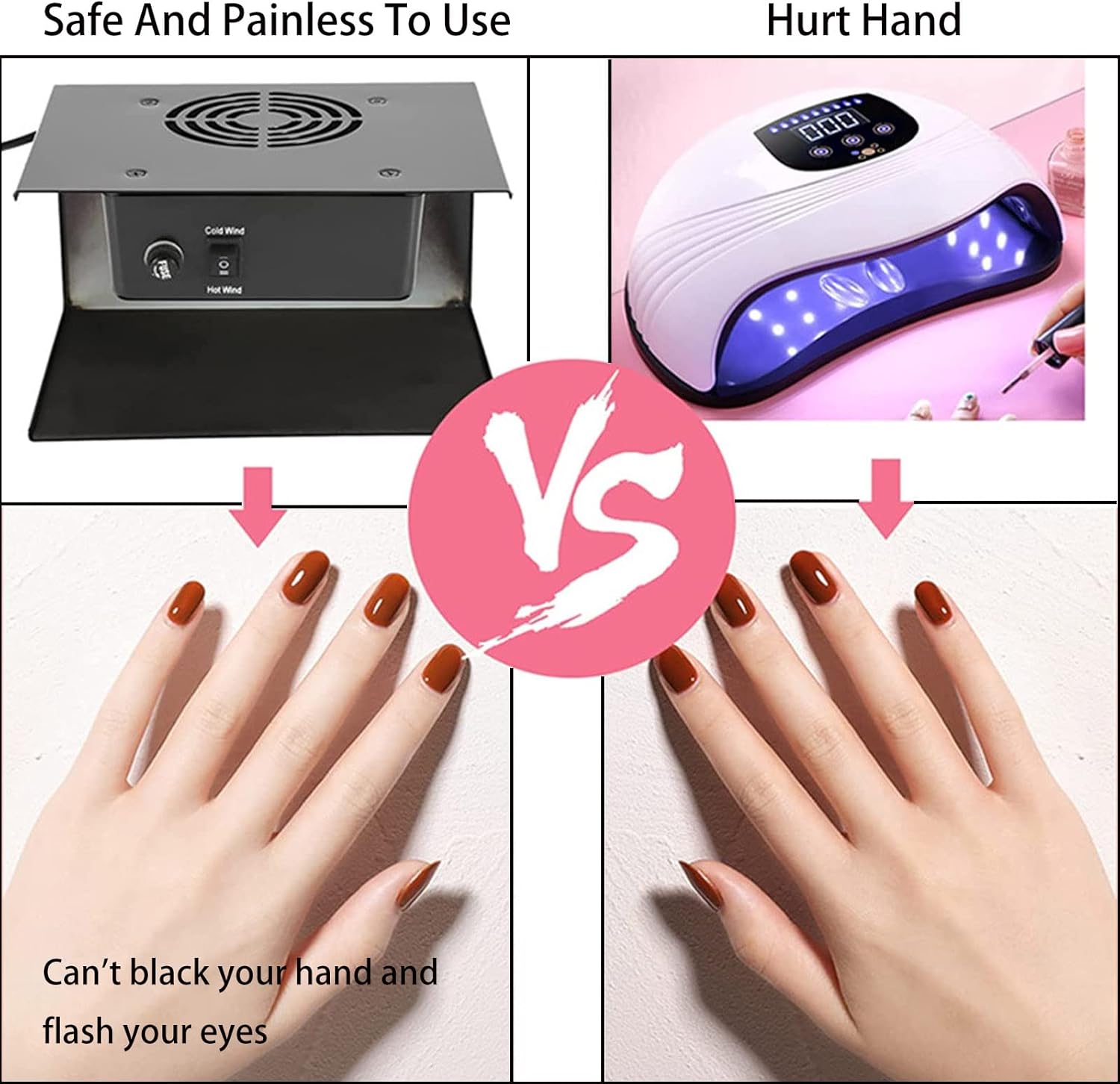 【Sturdy Material】Nail dryer for gel polish is made of iron material, durable to use, a protective black paint on the surface,anti-rust and easy to operate.Perfect for home and professional use.
